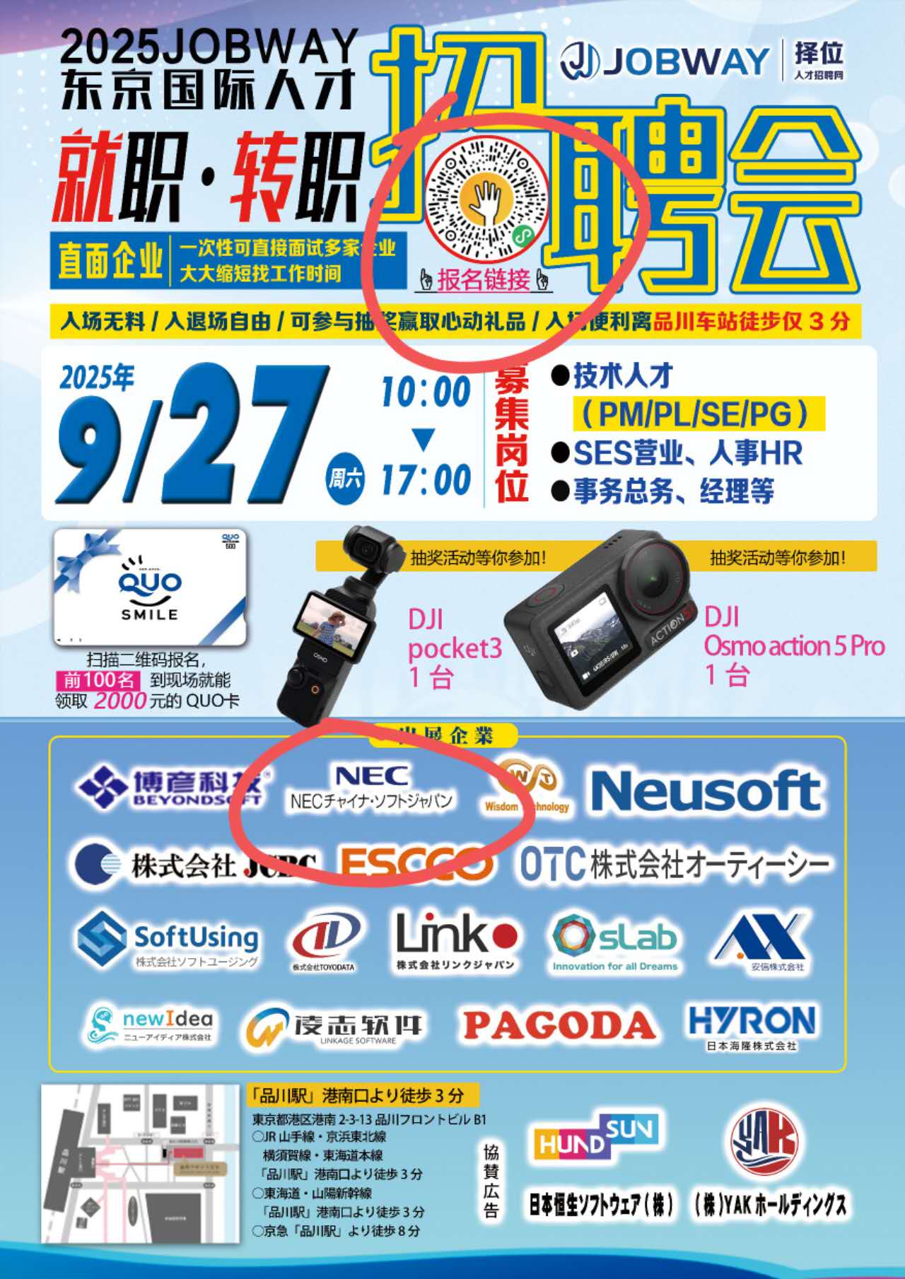 昨日友達に誘われて、今日合同説明会に行きました、日本の企業だけれど、面接官はほとんど中国人、もちろん応募者も中国人ばかりです。私は最近転職つもりはないので、履歴書を軽く修正して、2つだけを持っていきました。来た人は多くないが、そんな説明会に参加するのは初なので、楽しかったです。