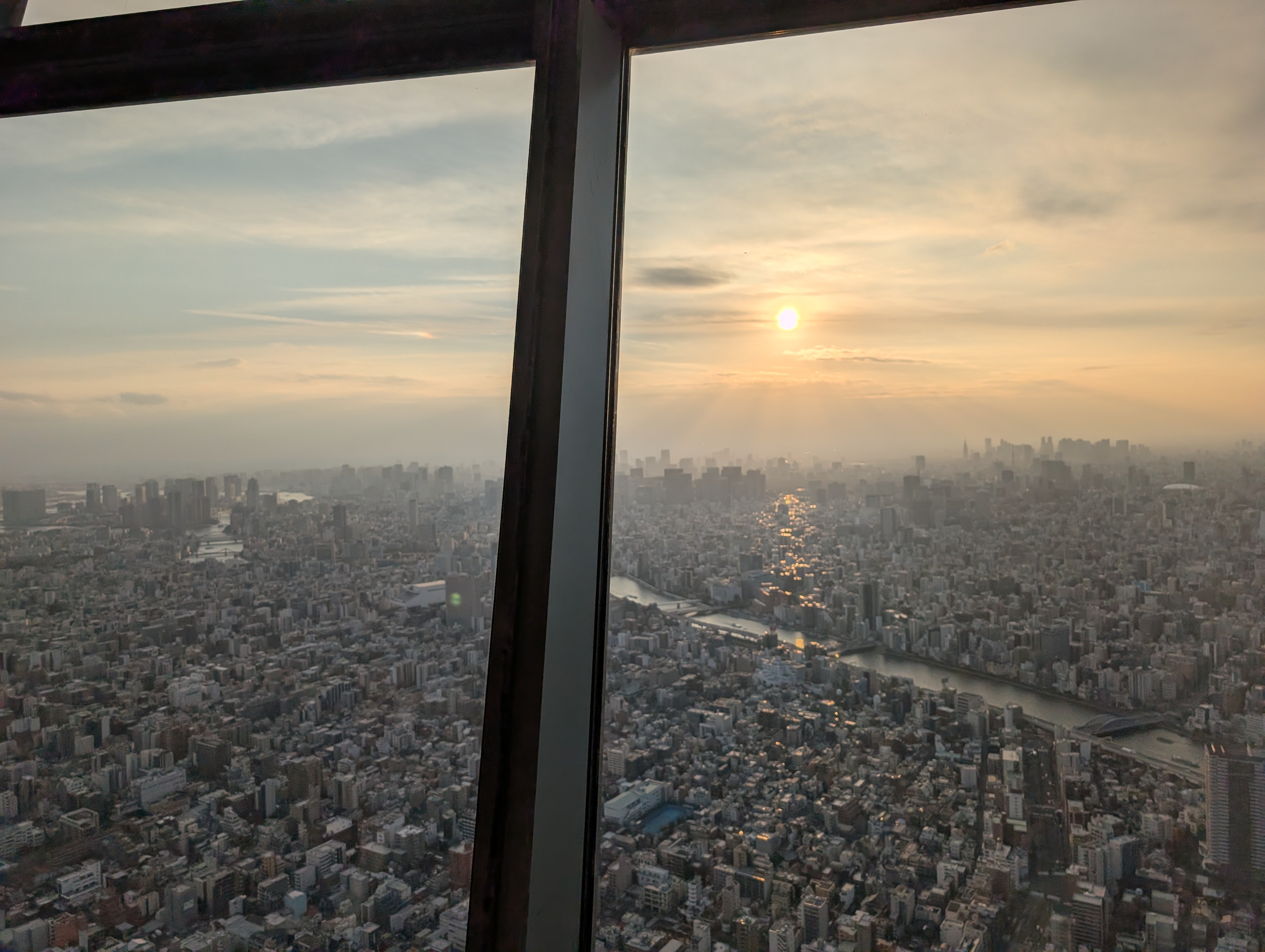 初めて登って日没を見て、楽しかった。夜は寒いけれど秋葉原に行きました。